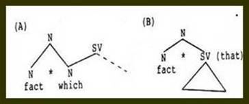 Figure 3. The TG treatment of noun complements and relative clauses.