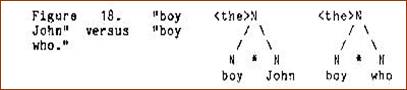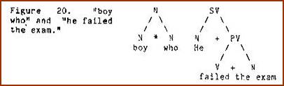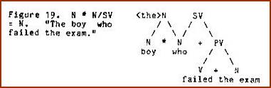 The junction rule for this structure is N * N/SV = N (N subjoin N of SV yields N). Interjunctions may be viewed as intersecting structures, i.e. structures which overlap each other at some point where there is co-reference. In the example cited above, the particular boy in question is the same person who failed the exam (Figure 20):